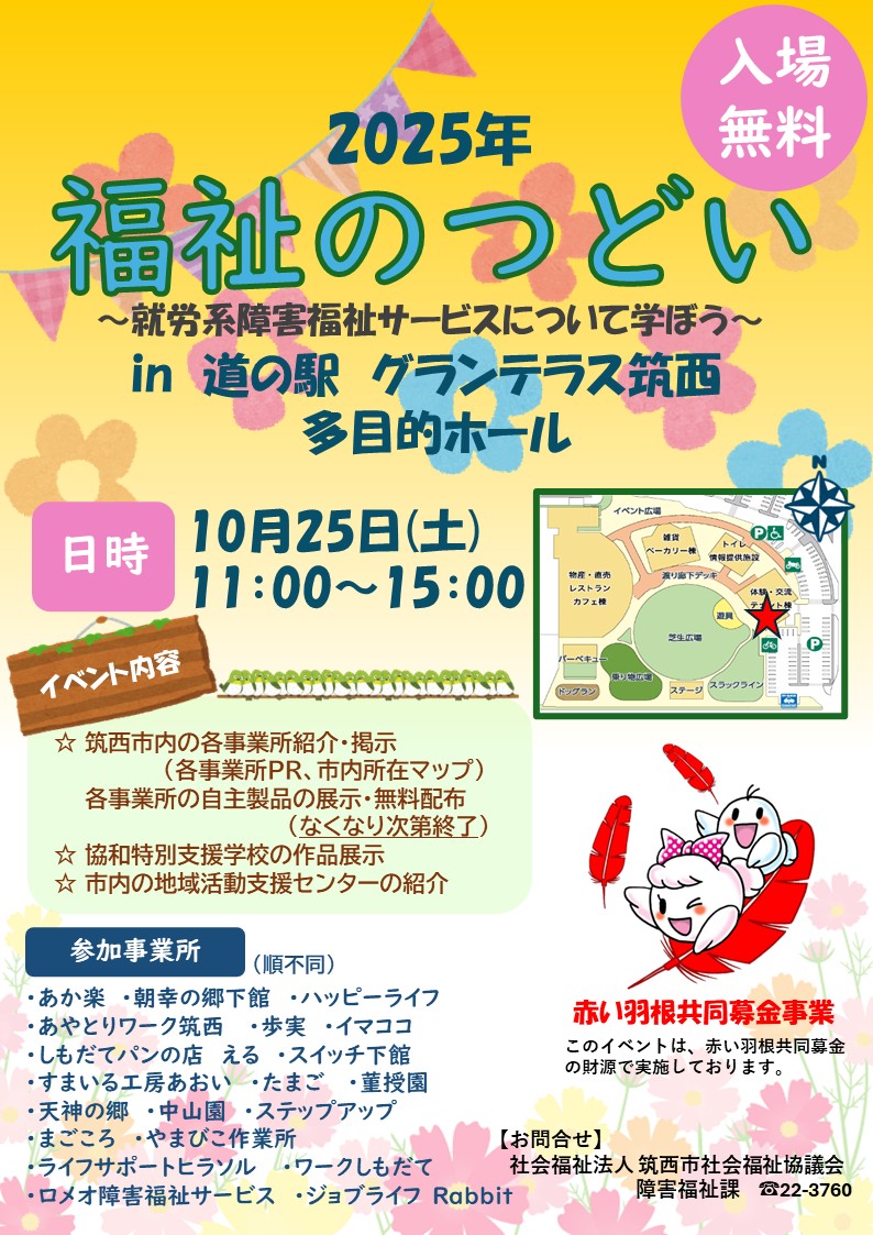 【10月25日(土) 2025年福祉のつどい ~就労系障害福祉サービスについて学ぼう~ in 道の駅グランテラス筑西】を開催します 10月25日(土)多目的室にて、『2025年福祉の Read More »