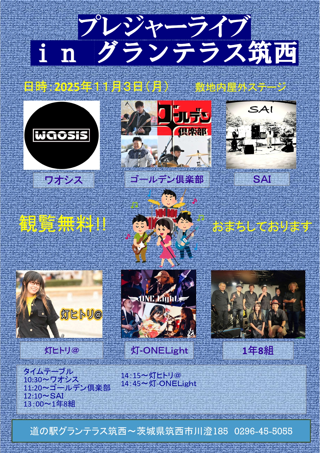 【11月3日(月・祝)プレジャーライブin グランテラス筑西】を開催します♪