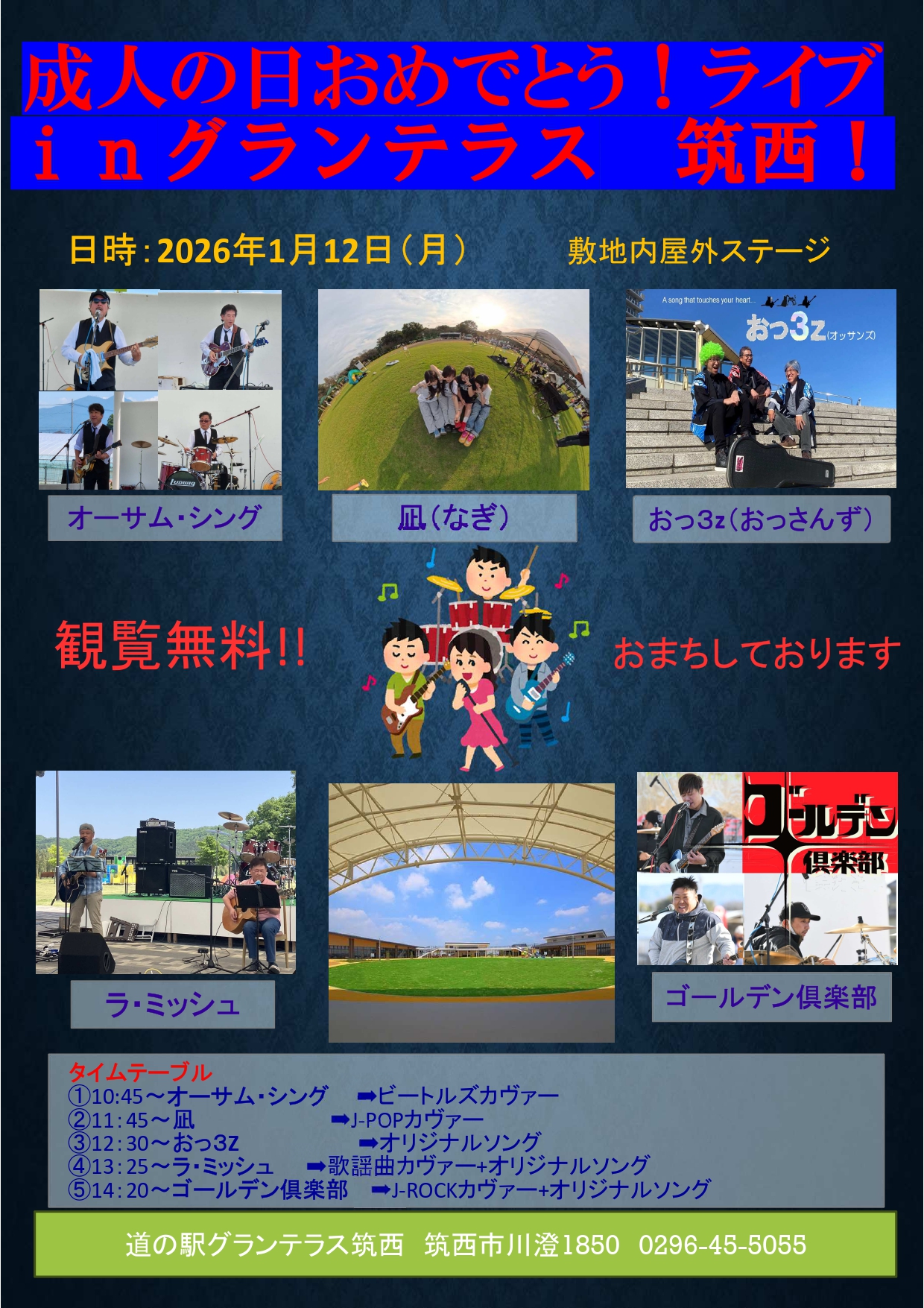 1月12日(月・祝)屋外ステージにて、野外音楽イベ