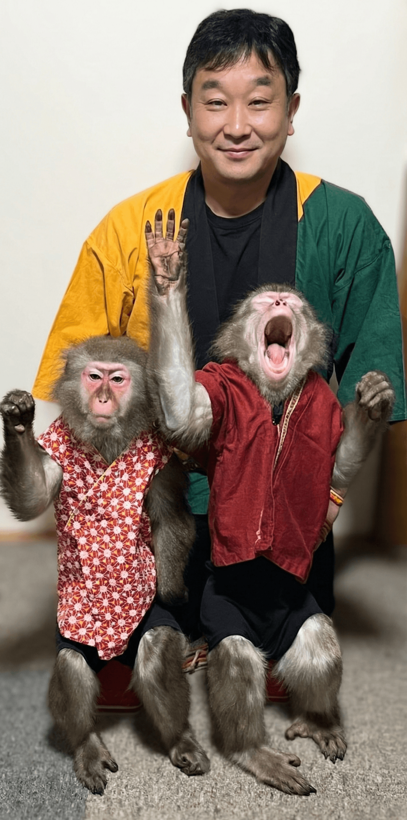 芸歴20年を超えるダンチョーの空(そら)と、愛嬌たっぷりのお猿の豆くんとみかんちゃんが繰り広げる本格猿まわし。